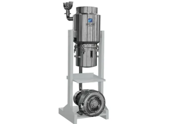 真空上料机系列配置高效真空泵,动力范围在4至7.5千瓦输送能力高达1200千克/小时,最大输送距离30米。真空系列配置简式过滤器,结构紧密,过滤器将气旋效应和尘埃分离完美结合,在落满灰尘的物料输送中尤其适用。